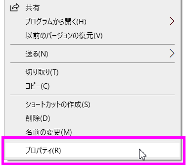 1.電子明細ファイルのアイコン上でマウスを右クリックするとメニューが表示されますので、一番下の[プロパティ(R)]をクリックします。